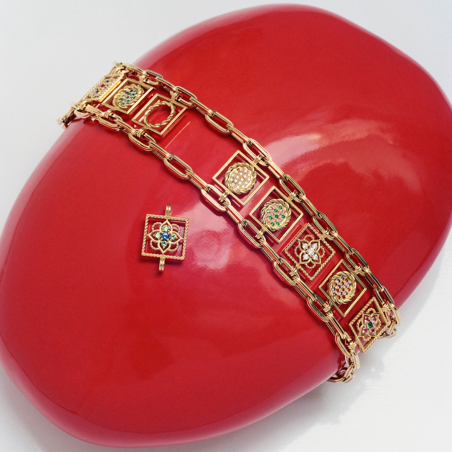 De petits “jardins suspendus” aux variations colorées, étincelantes mais surtout joyeuses se retrouvent ainsi transcrits dans de précieux mini carrés d’or. Chaque femme sensible à leur raffinement et souhaitant exprimer par eux sa personnalité et son goût les collectionner, les accumuler à ses poignets selon le moment et l’envie. Ces petits jardins suspendus offrent ainsi à chaque femme une infinité d’aspects combinatoires pour exprimer les étapes de sa vie et de sa personnalité, toujours en lien avec la nature ainsi devenue Naturée par le Joaillier Mellerio.