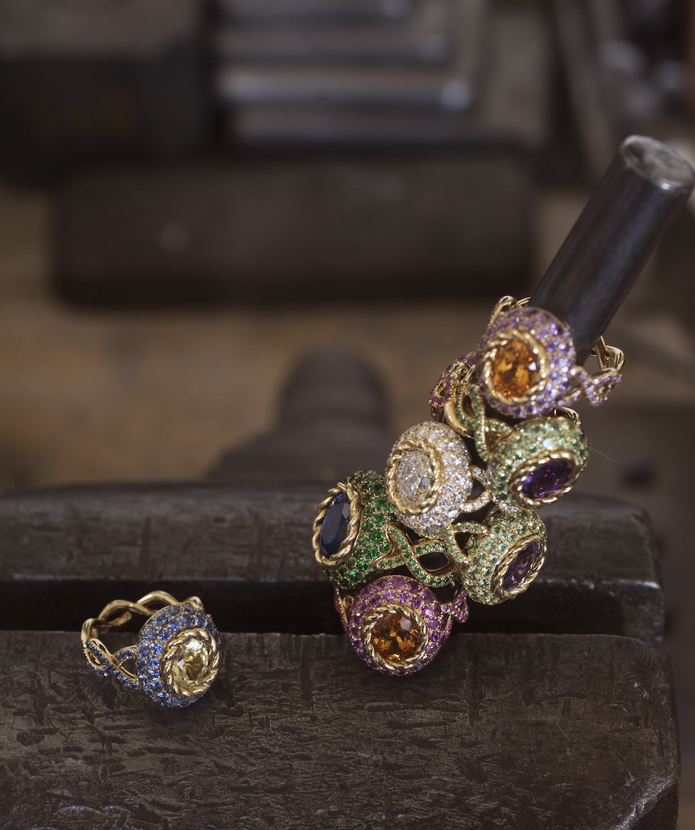 Les origines italiennes de la Maison se retrouvent aussi dans le chromatisme de ses créations. Jouant des contrastes ou des camaïeux, les bijoux créent une palette ludique et poétique évoquant l’allégresse méditerranéenne. L’éclat de l’or jaune, la douceur de l’or rose et la force de l’or vert renforcent le jeu des couleurs. Les pièces de joaillerie colorées alliant héritage historique et vitalité contemporaine deviennent ainsi une source de plaisir et plus encore une invitation au rêve.