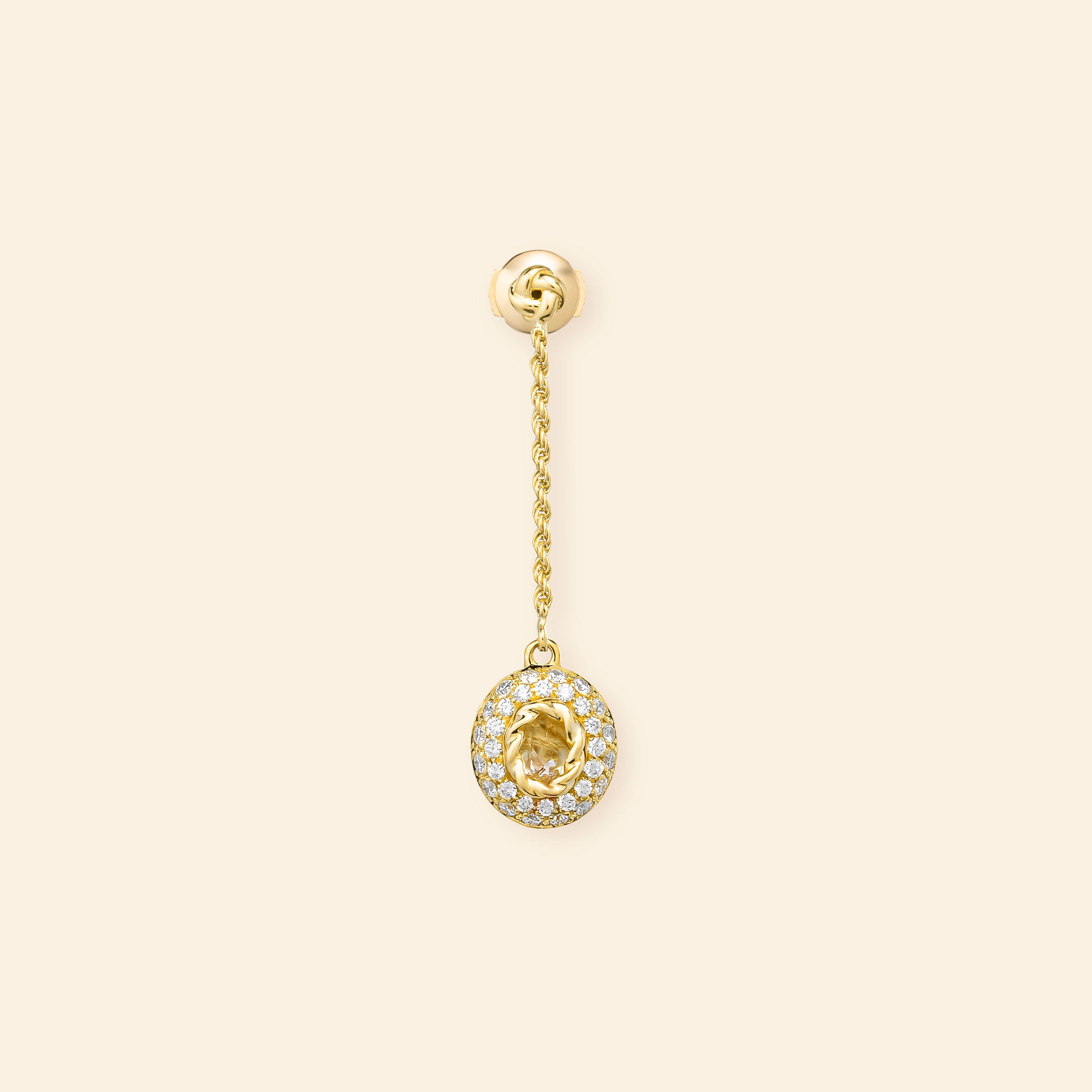 Boucle d'oreille Baby Queen en or jaune 18 carats, sertie de : 1 quartz rutile (0,21 ct), 32 diamants (0,24 ct). Système Alpa en or jaune 18k.