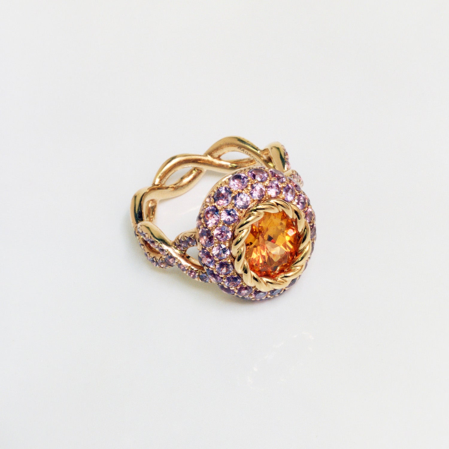 Bague spessartite et saphirs mauves en or jaune 18k - Bague haute joaillerie