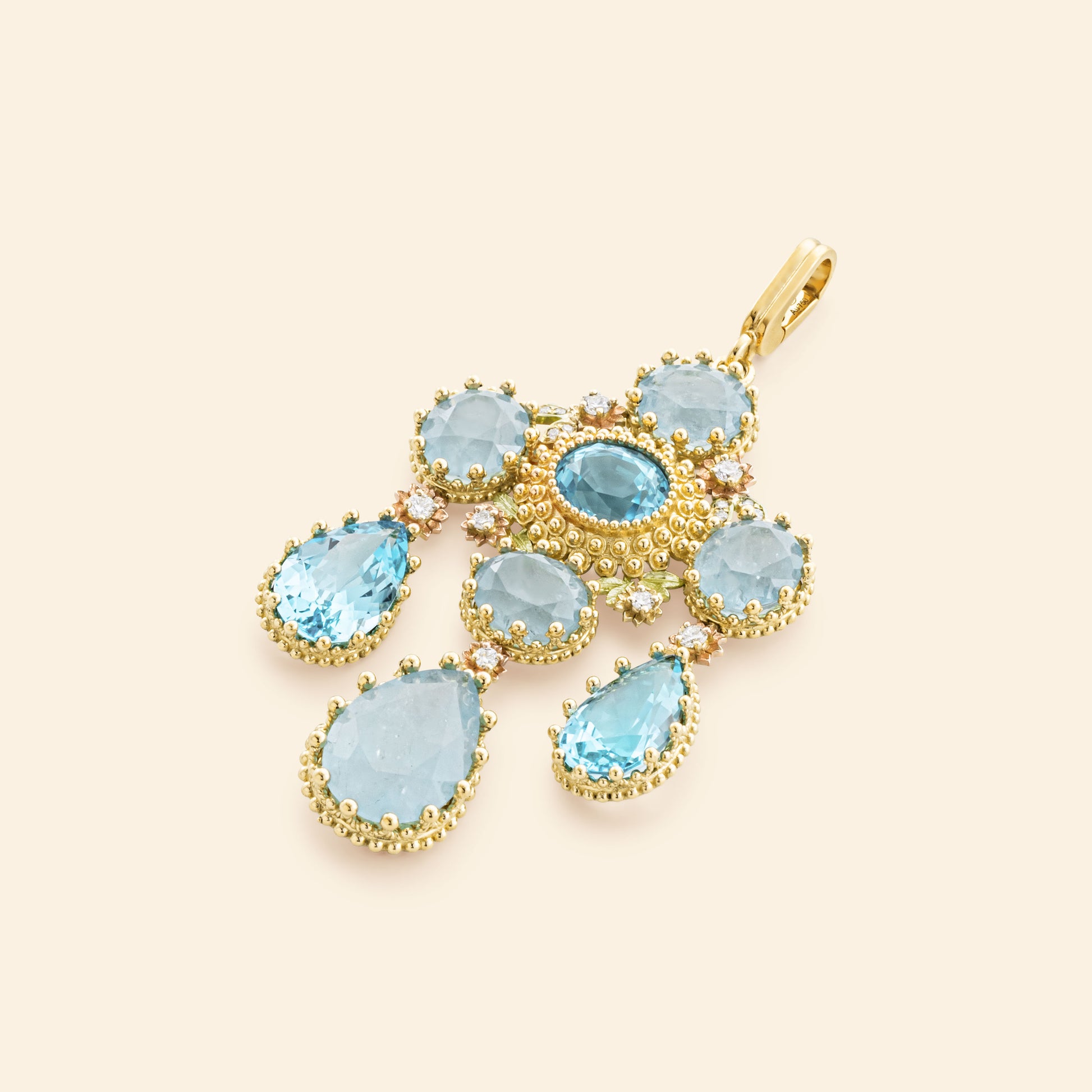 Médaille Pierreries Bleu en or jaune 18k sertie de :