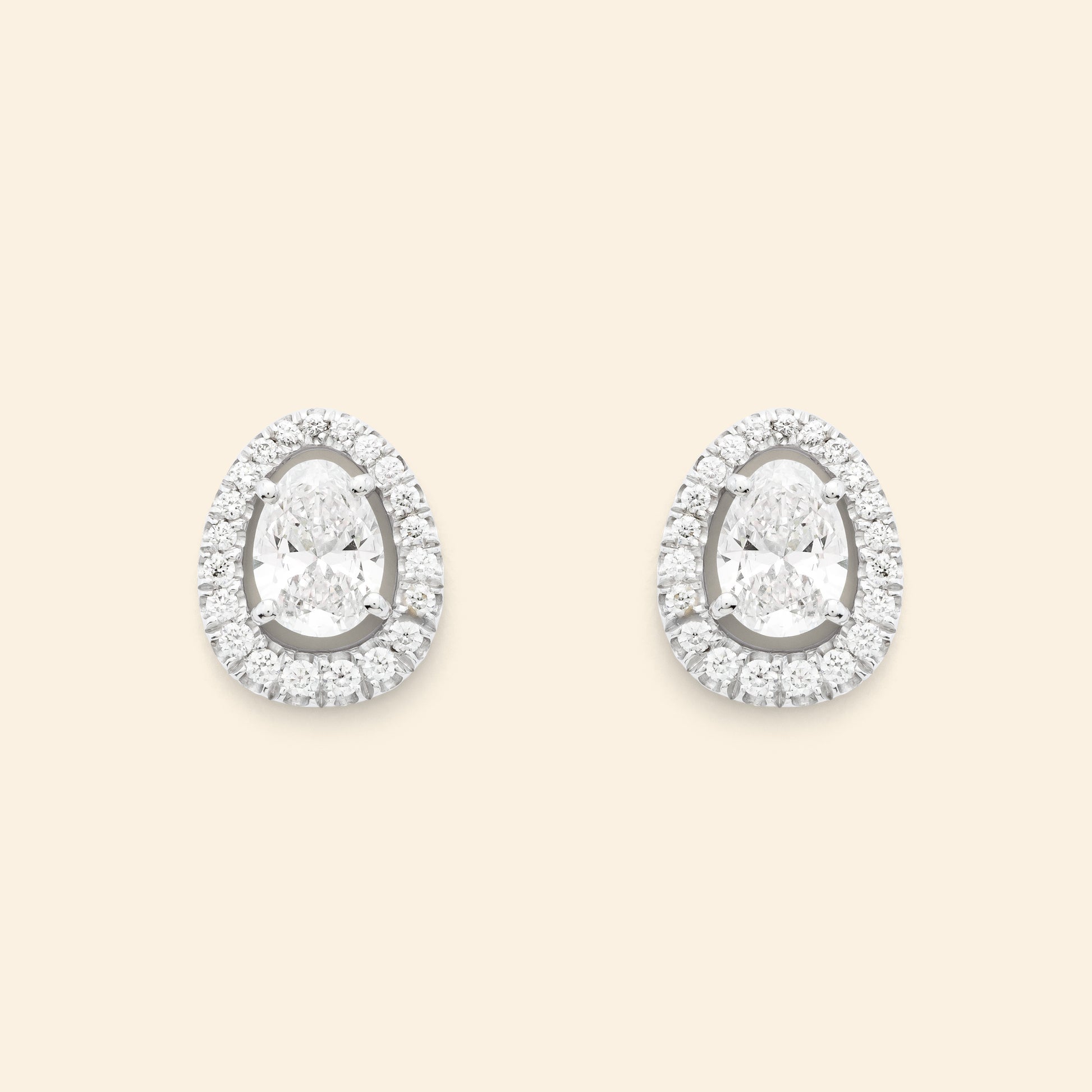 Mellerio Cut studs in 18k white gold set with a Mellerio Cut diamond and paved with diamonds.